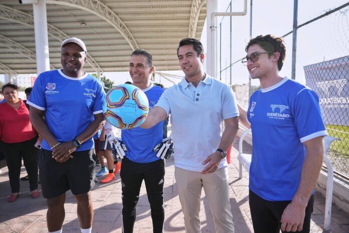 - El presidente municipal de Querétaro, Felifer Macías, acudió a la Unidad Deportiva San Pablo para acompañar a 75 niñas y niños en la primera clínica de fútbol encabezadas por leyendas del deporte: Aquivaldo y Wilder Mosquera, Gabriel Farfán Stopani y, como invitado especial, Adolfo Ríos García.