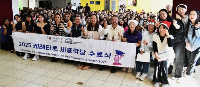 El rector de la Universidad Tecnológica de Querétaro (UTEQ), Luis Fernando Pantoja Amaro, encabezó la ceremonia de clausura del curso de idioma y cultura coreana del Instituto Rey Sejong (IRS) Querétaro, en el periodo septiembre-diciembre 2025, entregando certificados a más de 150 alumnos que concluyeron sus estudios en el aprendizaje del idioma en los niveles: 1a y b, 2a y b, así como 3a y b.