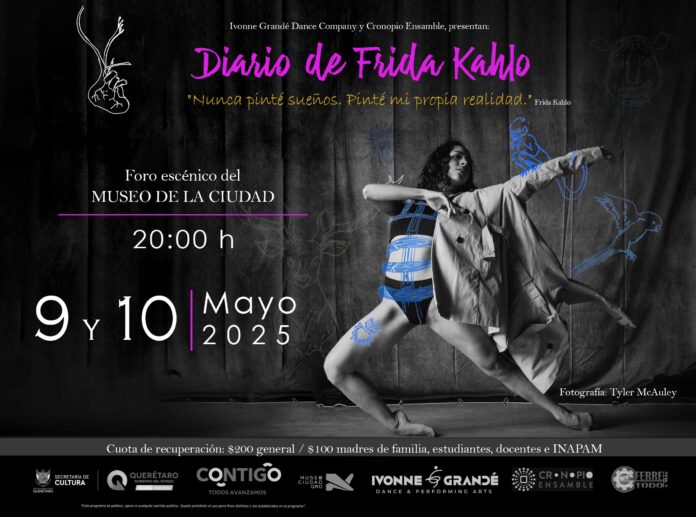 “Diario de Frida Kahlo”, que se presentará los días 9 y 10 de mayo próximos, a cargo de Ivonne Grandé, Dance Company y Cronopio Ensamble.