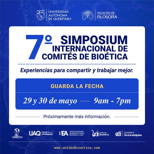 La Facultad de Filosofía (FFi) de la Universidad Autónoma de Querétaro (UAQ) llevará a cabo el séptimo Simposium Internacional de Comités de Bioética; se desarrollará los días 29 y 30 de mayo en las instalaciones de esta Unidad Académica. La edición 2025 tiene como temática: «Experiencias para compartir y trabajar mejor», contando con la intervención de integrantes de comités hospitalarios y de ética de investigación.