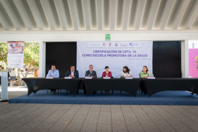 La titular de la Secretaría de Salud (SESA) del estado de Querétaro, María Martina Pérez Rendón, encabezó la ceremonia de entrega de reconocimiento al Centro de Estudios Tecnológico Industrial y de Servicios (CETIs) 16, ubicado en el municipio de Querétaro, como Escuela Promotora de la Salud al cumplir con los indicadores federales de la Estrategia Nacional de Salud Escolar.