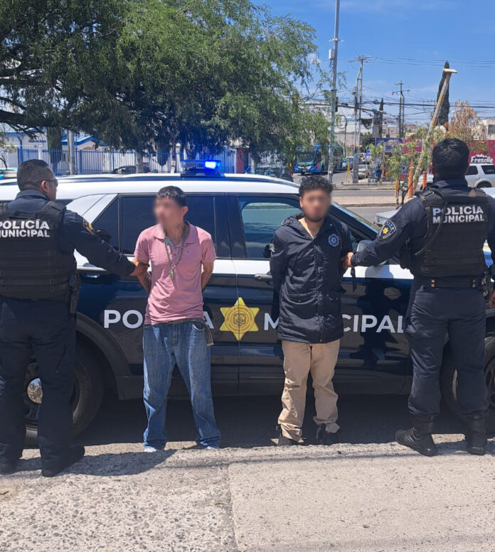 En una intervención en inmediaciones de la colonia Cerrito Colorado, derivado de las acciones que efectúan diariamente policías del municipio de Querétaro, con el objetivo de salvaguardar la integridad y patrimonio de la ciudadanía, dos personas del sexo masculino fueron puestas a disposición de las autoridades correspondientes por el delito de robo equiparado de vehículo.