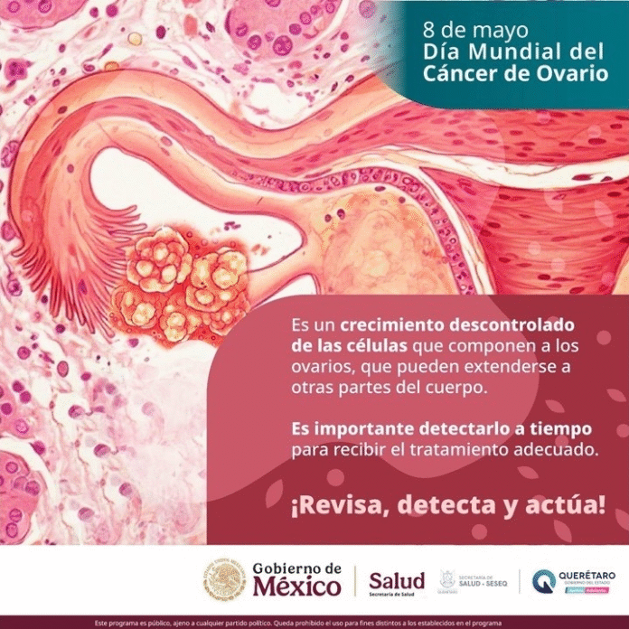 Con la finalidad de fortalecer la cultura de sensibilización y prevención para detectar a tiempo el Cáncer de Ovario, la Secretaría de Salud (SESA) del estado de Querétaro se une a la conmemoración, cada 8 de mayo, del Día Mundial por esta enfermedad.