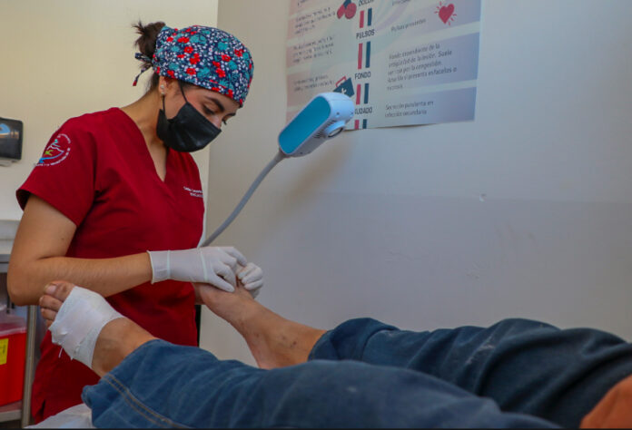 Con esto, dijo, se reduce el tiempo de recuperación y se mejora el bienestar en la vida de quienes reciben asistencia. Recordó que este proyecto inició con un aporte de cien mil pesos del Fondo para el Desarrollo del Conocimiento (Fondec) 2022 de esta Casa de Estudios y hasta la fecha ha atendido a 25 personas y realizó 285 curaciones, por lo que se considera una unidad consolidada.