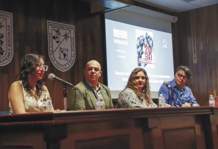 La Facultad de Ciencias Políticas y Sociales (FCPS) de la Universidad Autónoma de Querétaro (UAQ) instó a las y los asistentes a expresar sus ideas y los motivó a tener una intervención más activa en la toma de decisiones al interior de la Alma Mater, a través de la conferencia “Transformar la educación superior con las juventudes: propuestas para cocrear el futuro”, impartida por el representante educativo de UNESCO México, Mtro. Adolfo Rodríguez Guerrero.