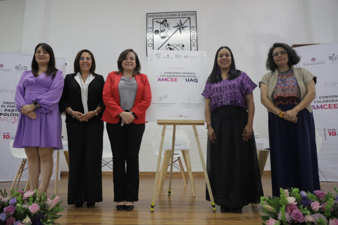 Con el objetivo de estrechar vínculos entre autoridades académicas y electorales para la construcción, acompañamiento y colaboración en materia de participación política en contexto de igualdad, la Universidad Autónoma de Querétaro (UAQ) y la Asociación Mexicana de Consejeras Estatales Electorales (AMCEE) firmaron un convenio encabezado por la rectora de la Máxima Casa de Estudios del estado, Dra. Silvia Amaya Llano, y la presidenta de la AMCEE, Mtra. Graciela Díaz Vázquez.