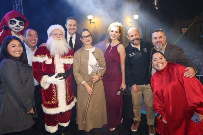 Como primera atracción, las autoridades estatales y municipales presenciaron un espectáculo a cargo de personajes de películas infantiles, que dio paso al encendido del Pino Monumental de 25 metros de altura que cuenta una estrella tridimensional de 4.5 metros, con estructura de acero cubierta de luces y alrededor se montó una gran villa navideña.