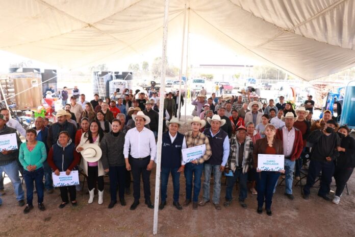 En el marco del Programa Contigo en Concurrencia para la Productividad Rural, se realizó la entrega de implementos agrícolas y forrajeros, tractores, herramientas, sementales, vientres y semilla de cultivos básicos en beneficio de 53 productores de este municipio. A su vez, el representante de los productores, Oscar Rivera, destacó la importancia de iniciar el año con apoyos y agradeció la oportunidad de hacer crecer la productividad en la región.