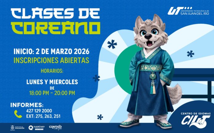 La Universidad Tecnológica de San Juan del Río (UT San Juan), a través de su Centro de Idiomas (CIUT), ofrece un nuevo curso de Coreano dirigido a personas de entre 18 y 25 años de edad que busquen una ventaja laboral competitiva ante las más de 70 empresas coreanas asentadas en Querétaro, mismas que buscan personal que domine el idioma para atender los sectores de electrodomésticos, autopartes y la industria química.