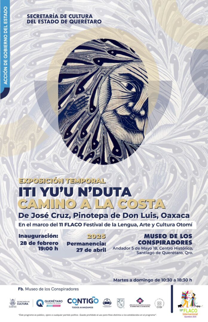 En el marco de la onceva edición del Festival de la Lengua, Arte y Cultura Otomí, el viernes 28 de febrero se inaugura en el Museo de los Conspiradores la exposicion “Camino a la costa” (Iti yu’u n’nduta) de José Cruz, artista oriundo de Pinotepa de Don Luis, Oaxaca, quien en esta ocasión aborda el tema del regreso idílico al terruño.