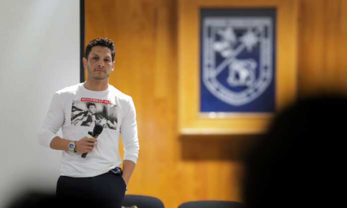 Con el fin de impulsar el deporte entre las y los estudiantes, la Universidad Autónoma de Querétaro (UAQ) recibió al exfutbolista profesional mexicano, Ángel Eduardo Reyna Martínez, conocido por su habilidad técnica para marcar puntos. El deportista dictó la conferencia “Cae, levántate y triunfa”, una charla cuyo mensaje central se enfocó en la relevancia de la perseverancia y la actitud de agradecimiento por lo aprendido a lo largo de su formación.