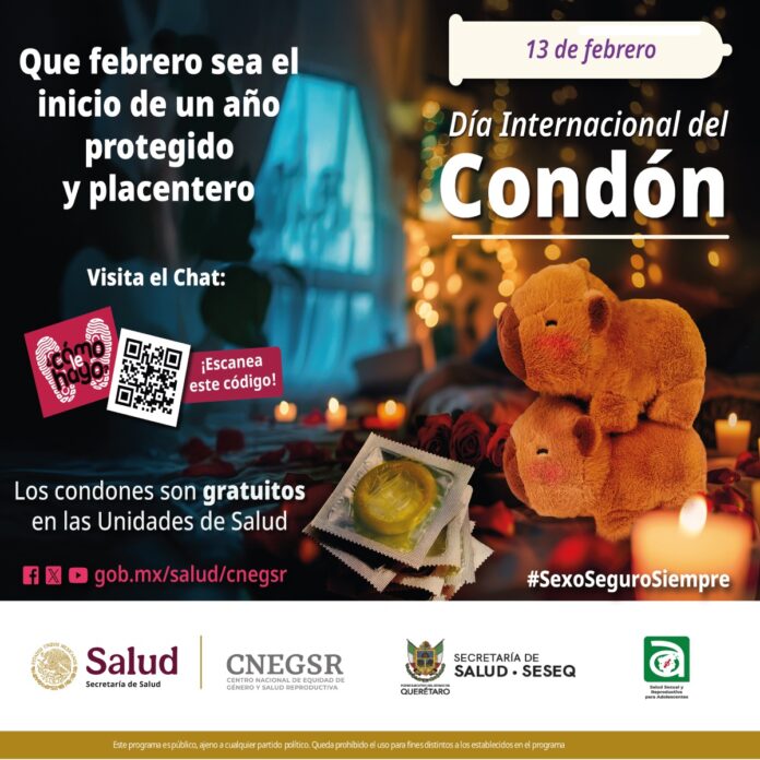 La Secretaría de Salud (SESA) del estado de Querétaro se une a la conmemoración del Día Internacional del Condón con el objetivo de concientizar a la población sobre la importancia de ejercer una sexualidad con responsabilidad, contribuyendo con el empoderamiento de las personas para la toma de decisiones sobre el uso correcto del preservativo, favoreciendo con ello la prevención del embarazo no planeado y las infecciones de transmisión sexual, además de decisiones consensuadas.