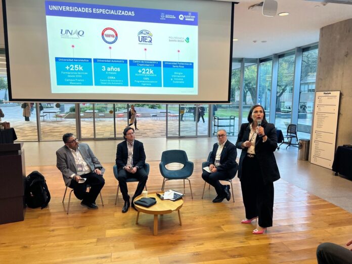 La secretaria de Educación del Estado de Querétaro, Martha Soto, participó en el Congreso de Innovación Educativa IFE Conference 2026, con la ponencia “Educación Superior y la Industria”, dentro del panel “Arquitecturas subnacionales de talento humano: de la brecha a la innovación”, en donde destacó la oferta educativa de nivel superior y el compromiso de la industria a nivel estatal.