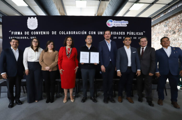 La Universidad Autónoma de Querétaro (UAQ), junto con otras Instituciones de Educación Superior (IES), se sumó al convenio impulsado por el Municipio de Corregidora —a través de su Secretaría de Desarrollo Social— que tiene como objetivo de apoyar a las y los alumnos avecindados en esta demarcación, dentro del programa “Universitario(a) a paso firme”, que consiste en el otorgamiento de 2 mil 500 pesos semestrales, para su reinscripción.